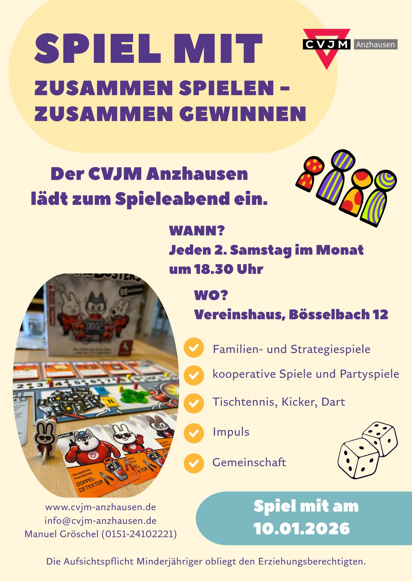 👉 Ansprechpartner: Manuel Gröschel, Tel. 0151-24102221, manuel.groeschel@cvjm-anzhausen.de